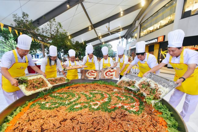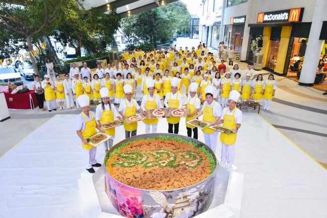 โดยลาบ 8 เซียนเจกระทะยักษ์ ใหญ่ที่สุดในโลก ทำในกระทะยักษ์ที่มีขนาดเส้นผ่านศูนย์กลางขนาด 2 เมตร 40 เซนติเมตร ประกอบไปด้วย 8 วัตถุดิบมงคล ซึ่งมีความเชื่อว่าเป็นวัตถุดิบที่รับประทานแล้วเฮง ได้ทั้งบุญ และเป็นมงคลชีวิต ประกอบด้วย โปรตีนเกษตร หนังหมูเจ เห็ดหูหนูดำ เห็ดหูหนูขาว เห็ดนางฟ้า เห็ดเข็มทอง เห็ดหอม และเต้าหู้ดำ รวมน้ำหนักวัตถุดิบกว่า 55 กิโลกรัม