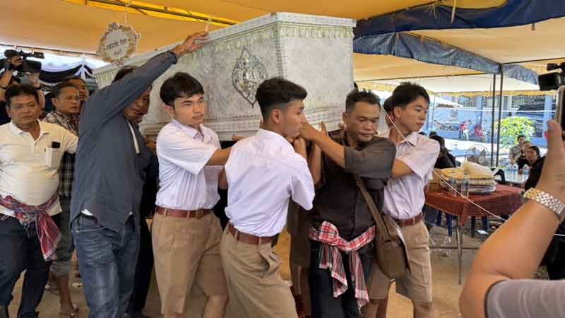 ล่าสุดเมื่อเย็นวันที่ 19 ต.ค.2566 มีการเคลื่อนร่าง นักเรียนชั้น ม.6 ผู้เสียชีวิตไปฌาปนกิจที่วัดบางบูชาชนาราม อ.ปากพนัง จ.นครศรีธรรมราช โดยมีเพื่อนนักเรียนและเพื่อนบ้านจำนวนมากมาร่วมเคลื่อนร่างไปยังสถานที่ฌาปนกิจ ท่ามกลางบรรยากาศโศกเศร้าเสียใจ