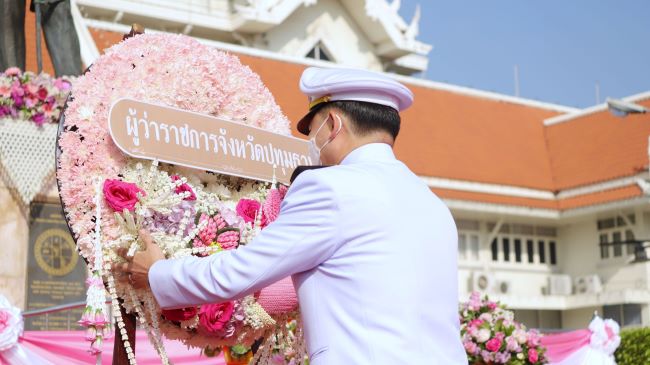 ผู้ว่าฯปทุมธานี นำข้าราชการวางพวงมาลาพระบรมราชานุสาวรีย์ พระบาทสมเด็จพระจุลจอมเกล้าเจ้าอยู่หัว เนื่องในวันปิยมหาราช ณ บริเวณลานหน้าศาลากลางจังหวัดปทุมธานี