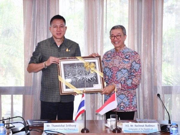ชลบุรี-ผู้ว่าฯชลบุรีต้อนรับเอกอัครราชทูตอินโดนีเซีย ประจำประเทศไทย ในโอกาสเดินทางเยี่ยมเยือนกระชับความสัมพันธ์และสร้างความสัมพันธ์ทวิภาคีระหว่างประเทศอินโดนีเซียและประเทศไทยระดับท้องถิ่นเชื่อมโยงการค้า การลงทุนระหว่างทั้งสองประเทศ
