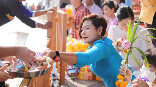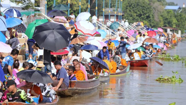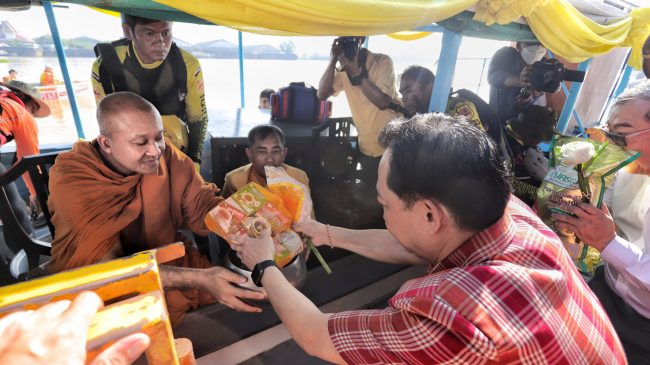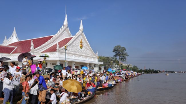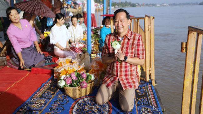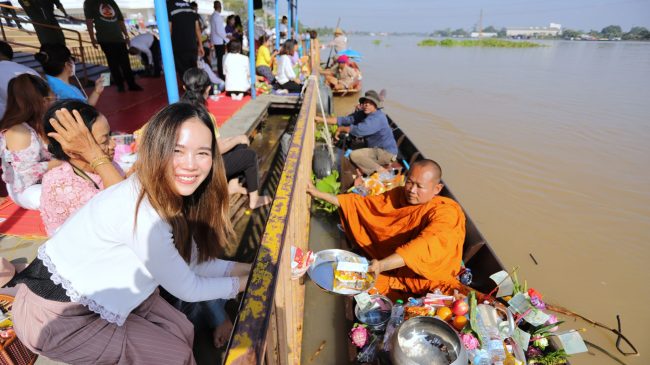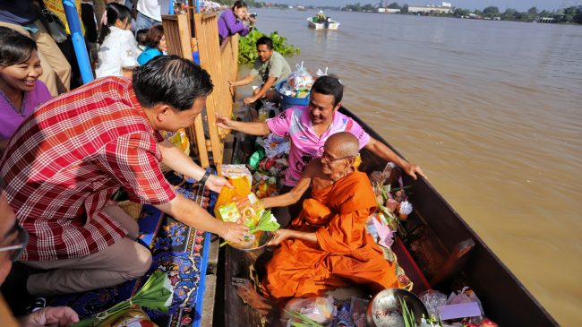 พ่อเมืองปทุมธานีร่วมประเพณีตักบาตรพระร้อยทางเรือวัดชินวราราม สืบสานวัฒนธรรมลุ่มน้ำเจ้าพระยา