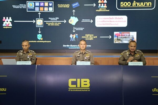 ปอท. เปิดปฏิบัติการ “CIB Anti Online Scam” ปราบเครือข่าย แอปฯกู้เงินออนไลน์ ดอกเบี้ยโหด พบเงินหมุนเวียนกว่า 500 ล้านบาท จับ 2 ผู้ต้องหาระดับสั่งการ