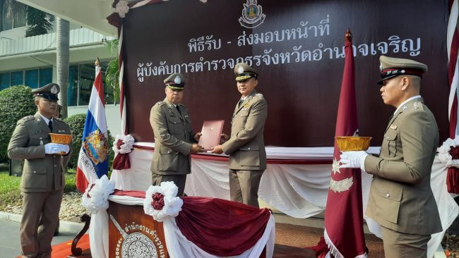 หลังจากจัดพิธีส่งมอบงานในหน้าที่ และธงประจำหน่วยให้กับ พล.ต.ต. มารุต เรืองจินตนา ผู้บังคับการตำรวจภูธรจังหวัดอำนาจเจริญ ซึ่งเดินทางมาดำรงตำแหน่ง เป็นผู้การ ป้ายแดงคนใหม่ ที่บริเวรหน้ากองกำกับการตำรวจภูธรจังหวัดอำนาจเจริญ เมื่อเวลา 10.30 น.วันที่ 17 พ.ย.2566 เสร็จสรรพได้พบปะกับ เจ้าหน้าที่ตำรวจ ทุกอำเภอ ทั้ง 7 อำเภออย่างเป็นกันเอง ตลอดทั้งกล่าวให้โอวาทแก่ข้าราชการตำรวจ ในโอกาสรับตำแหน่งใหม่