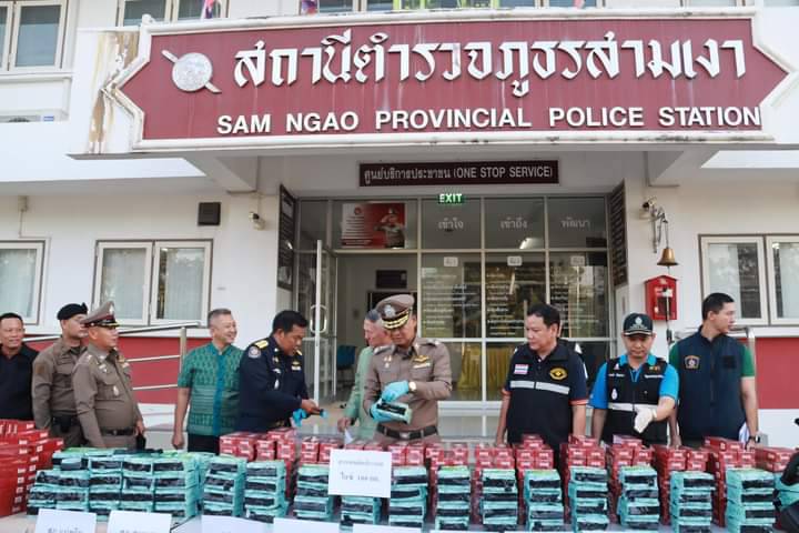 ที่สถานีตำรวจภูธรสามเงา อ.สามเงา จ.ตาก นายสมชัย กิจเจริญรุ่งโรจน์ ผู้ว่าราชการจังหวัดตาก พร้อมด้วย พลตำรวจตรี สัมฤทธิ์ เอมกมล ผู้บังคับการตำรวจภูธรจังหวัดตาก ,รอง ผอ.รมน.ตาก (ฝ่ายทหาร) ,ผู้อำนวยการส่วนบังคับใช้กฎหมาย ป.ป.ส.ภาค 6 ,สรรพสามิตจังหวัดตาก ,นายอำเภอสามเงา ,ผกก.สภ.สามเงา ,สภ.แม่พริก และหน่วยงานที่เกี่ยวข้อง ร่วมกันแถลงข่าวการจับกุมตัวผู้ต้องหา 2 ราย พร้อมของกลางยาไอซ์ 100 กิโลกรัม และบุหรี่หนีภาษีจำนวนหนึ่ง ซึ่งตำรวจ สภ.สามเงา จับกุมตัวผู้ต้องหา และตรวจยึดของกลางดังกล่าวไว้ได้ เมื่อช่วงสายของวันนี้