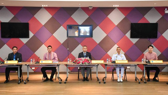 นางอำไพ ศักดานุกูลจิต สไลวินสกี้ ท่องเที่ยวและกีฬาจังหวัดชลบุรี นายปรเมศวร์ งามพิเชษฐ์ นายกเมืองพัทยา นายสนธยา คุณปลื้ม นายกสมาคมกีฬาแห่งจังหวัดชลบุรี และส่วนราชการที่เกี่ยวข้องร่วมประชุมและร่วมการแถลงข่าวฯ ณ ห้องประชุมทัพพระยา ศาลาว่าการเมืองพัทยา อำเภอบางละมุง จังหวัดชลบุรี