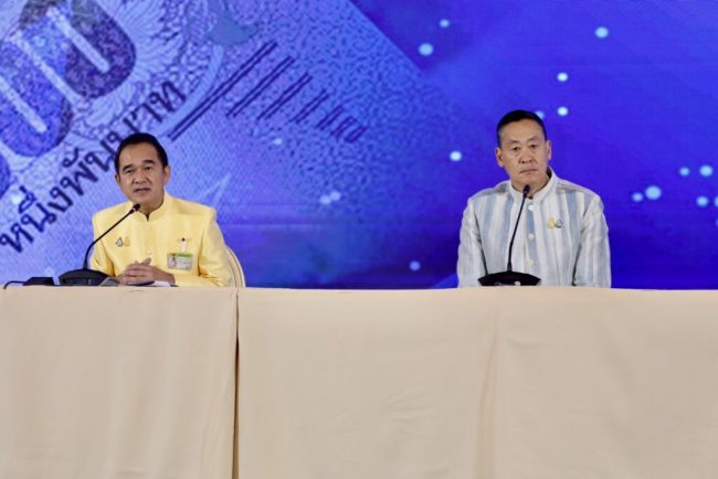 เมื่อวันที่ 28 พฤศจิกายน 2566 ที่ทำเนียบรัฐบาล นายเศรษฐา ทวีสิน นายกรัฐมนตรี และรมว.คลัง พร้อมด้วย นายอนุทิน ชาญวีรกูล รองนายกรัฐมนตรี และรมว.มหาดไทย นายกฤษฎา จีนะวิจารณะ รมช.คลัง และ พล.ต.อ.ธนา ชูวงศ์ รองผู้บัญชาการตำรวจแห่งชาติ ร่วมแถลงข่าววาระแห่งชาติ การแก้ปัญหาหนี้นอกระบบ