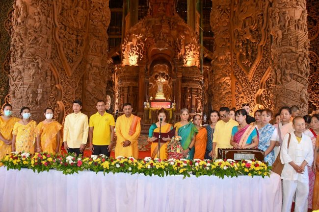 โดยมีนายธวัชชัย ศรีทอง ผู้ว่าราชการจังหวัดชลบุรี นายพิสิษฐ์ สิริสวัสดินุกูล นายอำเภอบางละมุง น.ส.อสิตรา รัตตะมณี หัวหน้าสำนักงานจังหวัดชลบุรี นางศุภาวี บำรุงศักดิ์ วัฒนธรรมจังหวัดชลบุรี หัวหน้าส่วนราชการ เรือตรีปราโมทย์ ทับทิม ปลัดเมืองพัทยา นายพิจารณ์ วิริยะพันธุ์ ประธานบริหารปราสาทสัจธรรม นักท่องเที่ยวและสื่อมวลชนร่วมพิธีเป็นจำนวนมาก