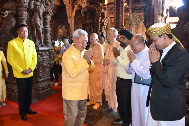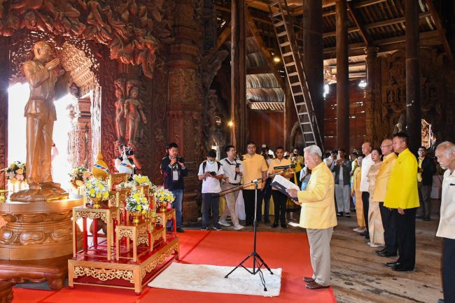 เมื่อเวลา 09.00 น.วันที่ 9 ธันวาคม 2566 ณ ปราสาทสัจธรรม เมืองพัทยา อำเภอบางละมุง จังหวัดชลบุรี พลเอกสุรยุทธ์ จุลานนท์ ประธานองคมนตรี เดินทางมาเป็นประธานฝ่ายฆราวาส ในพิธีเจริญพระพุทธมนต์ พระสงฆ์ 109 รูป และสามเณร 300 รูป ถวายพระราชกุศลแด่พระบาทสมเด็จพระบรมชนกาธิเบศร มหาภูมิพลอดุลยเดชมหาราช บรมนาถบพิตร โดยมีพระเดชพระคุณพระมหาถาวร ฐานวโร เจ้าคณะอำเภอบางละมุง เจ้าอาวาสวัดสุทธาวาส เป็นประธานฝ่ายสงฆ์