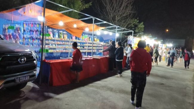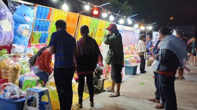 บริเวณสนามฟุตบอลหน้าโรงเรียนมีการตั้งเวทีคอนเสิร์ต พร้อมมีการล้อมรั้วสังกะสีเพื่อเก็บบัตรเข้าชมคอนเสิร์ต ในราคา 120 บาท ซึ่งภายในก็มีบูธจำหน่ายเหล้าเบียร์ อยู่ภายในด้วย ส่วนที่บริเวณหน้าเสาธง ด้านหน้าอาคารเรียน ก็ยังพบร้านค้าอีกจำนวนหนึ่งตั้งแผงลอยเรียงรายเปิดขาย เหล้า เบียร์ น้ำท่อมบรรจุขวดพลาสติก และมีการปล่อยให้มีการเล่นการพนันปาโป่ง ยิงเป้า อย่างโจ๋งครึ่ม