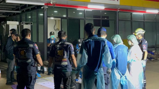 ที่เกิดเหตุพบศพผู้เสียชีวิต 2 ราย บริเวณหน้าออฟฟิศ และที่พักพนักงานในปั๊ม รายแรกทราบชื่อผู้เสียชีวิต คือ นายพมจัก สีสุพา หรือเซล อายุ 33 ปี พนักงานปั๊ม ชาวลาวแขวงบริคำไชย สปป.ลาว สภาพไม่สวมเสื้อ สวมกางเกงขาสั้น มีบาดแผลคล้ายถูกของมีคม หรือถูกยิงที่ศีรษะ กะโหลกเปิดครึ่งหัว สมองกระจาย นอนตะแคงซ้าย อีกศพชื่อ นางสาววิชุดา ศรีสุมังค์ หรือนัน อายุ 50 ปี ชาวบ้านดอนม่วง ต.บ้านผึ้ง อ.เมือง จ.นครพนม ในสภาพนอนหงาย สวมเสื้อยืดแขนยาว กางเกงขายาวสีดำ รองเท้าแบบสวมสีขาว ลักษณะขายังคร่อมรถจักรยานยนต์ ยี่ห้อฮอนด้าเวฟ สีน้ำเงิน ทะเบียน 1 กจ 8242 นครพนม สภาพศพถูกยิงบริเวณท้ายทอย ทะลุใบหน้า สมองกระจายจากการตรวจในพื้นที่เกิดเหตุ ยังไม่พบปลอกกระสุน หรือหลักฐานที่จะเชื่อมโยงหาเบาะแสติดตามจับกุมตัวคนร้าย ส่วนกล้องวงจรปิดภายในปั๊มทั้งหมด 13 ตัว ถูกถอดปลั๊กระบบเซิร์ฟเวอร์ควบคุมการบันทึกภาพออก ตำรวจกำลังเร่งตรวจสอบเก็บหลักฐาน พร้อมส่งศพผู้เสียชีวิต ไปชันสูตร เก็บหลักฐาน อย่างละเอียดที่สถาบันนิติเวช จ.ขอนแก่น