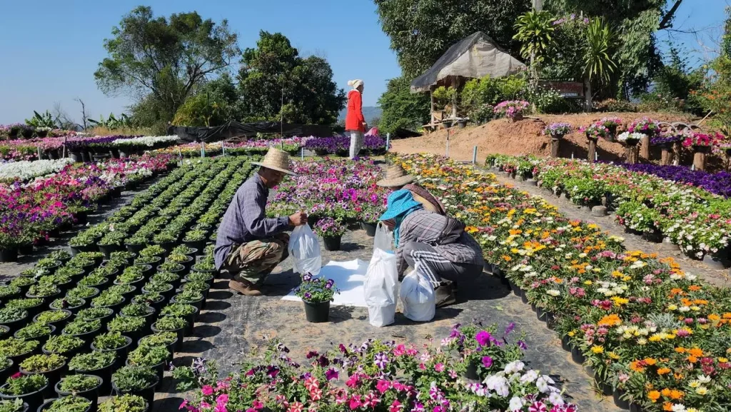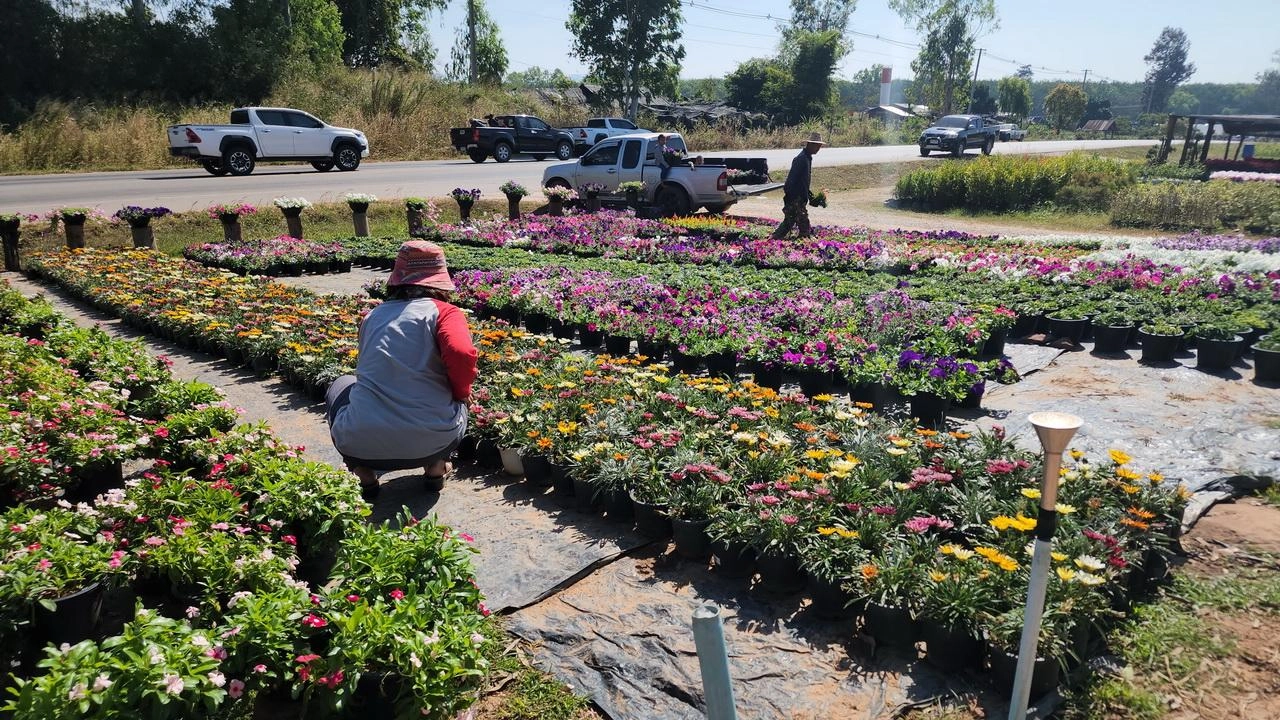 ขณะที่ ลูกค้ากลุ่มโรงแรม รีสอร์ต และแหล่งท่องเที่ยว ที่ซื้อไปประดับสวนก็มาซื้อน้อยมาก โดยปีนี้ดอกไม้กระถางขายไม่ได้ ยอดหายไปครึ่งหนึ่งของปีที่แล้ว เพราะเมื่อปีที่แล้วช่วงปีใหม่ขายไปเกือบหมด เหลือนิดเดียว ส่วนปีนี้เหลือที่ขายไม่ออก 70% ปีนี้ต้องยอมขาดทุน ปีนี้ยังไม่ได้ทุนคืนเลย สำหรับใครที่ต้องการซื้อไปประดับสวนหรือนำไปขายสามารถติดต่อได้ที่เบอร์ 09-3123-8961.