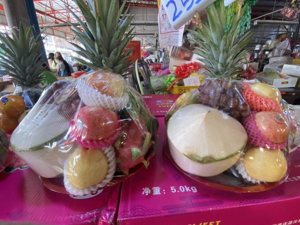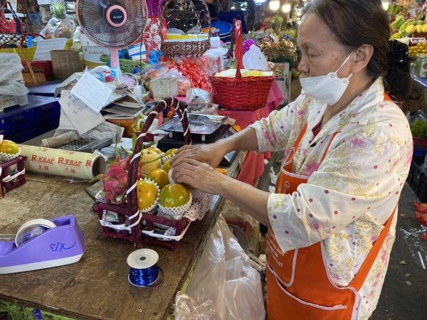 โดยที่ราคาเริ่มต้นส่วนใหญ่จะอยู่ในราคาตั้งแต่ 400-500 บาทขึ้นไปจนถึงหลัง 2-3 พันบาท นอกจากกระเช้าผลไม้ที่ขายดีแล้วยังมีชุดผลไม้มงคล 9 ชนิด ซึ่งประกอบด้วย มะพร้าว กล้วยน้ำว้า สาลี่ ส้ม แก้วมังกร สับปะรด แอ็ปเปิ้ล องุ่นแดง และส้มเขียวหวาน ซึ่งเป็นที่นิยมของประชาชนซื้อไปไหว้ขอพรสิ่งศักดิ์สิทธิ์ในช่วงเทศกาลปีใหม่