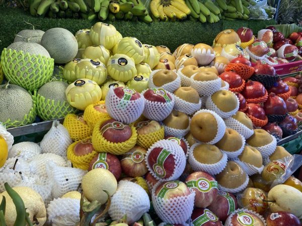 นอกจากนี้ทางเจ้าของร้านยังได้มีการสั่งผลไม้จากต่างประเทศมารองรับลูกค้า ทั้งส้มแมนดารินจากจีน ส้มใต้หวัน ทับทิมจากประเทศอิสราเอล องุ่นแดง และผลไม้อื่นๆอีกหลายชนิด ที่นำมาวางขายหน้าร้านพร้อมให้ลูกค้าได้สั่งใส่กระเช้าเพื่อเป็นของขวัญปีใหม่ ซึ่งผลไม้ที่ลูกค้านิยมสั่งมาจัดกระเช้านั้นส่วนใหญ่จะเป็นส้ม สาลี่ องุ่นแดง