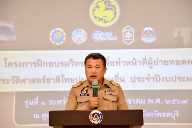 การฝึกอบรมวิทยากรเพื่อทำหน้าที่เป็นผู้ถ่ายทอดความรู้เกี่ยวกับประวัติศาสตร์ชาติไทยประจำท้องถิ่น มีวัตถุประสงค์เพื่อให้ผู้เข้ารับการฝึกอบรม มีความรู้ความเข้าใจเกี่ยวกับหลักการทรงงานและการพัฒนาประเทศตามหลักปรัชญาของเศรษฐกิจพอเพียงของพระบาทสมเด็จพระบรมชนกาธิเบศรมหาภูมิพลอดุลยเดชมหาราช บรมนาถบพิตร เพื่อนำมาปรับใช้ให้เป็น วิถีในการดำเนินชีวิต เป็นผู้มีจิตอาสา จิตสาธารณะ เสียสละ เอื้อเพื้อแบ่งปันแก่ผู้อื่น มีค่านิยมของการเป็นผู้มีจิตสำนึกรักและหวงแหน มุ่งจงรักภักดีพร้อมธำรงรักษาไว้ซึ่งสถาบันชาติ ศาสนา และพระมหากษัตริย์ ตลอดจนนำความรู้ความเข้าใจ และประสบการณ์ที่ได้รับไปต่อยอด ขยายผล เพื่อการพัฒนาพื้นที่ตามบริบทของภูมิสังคม และยกระดับคุณภาพชีวิตของพี่น้องประชาชนอย่างยั่งยืน โดยได้รับความอนุเคราะห์คณะวิทยากรบรรยายให้ความรู้ทางวิชาการ การเสวนาแลกเปลี่ยนเรียนรู้ ตลอดจนการทดสอบเพื่อวัดมาตรฐานของผู้เข้ารับการฝึกอบรมจากศูนย์อำนวยการใหญ่จิตอาสาพระราชทาน