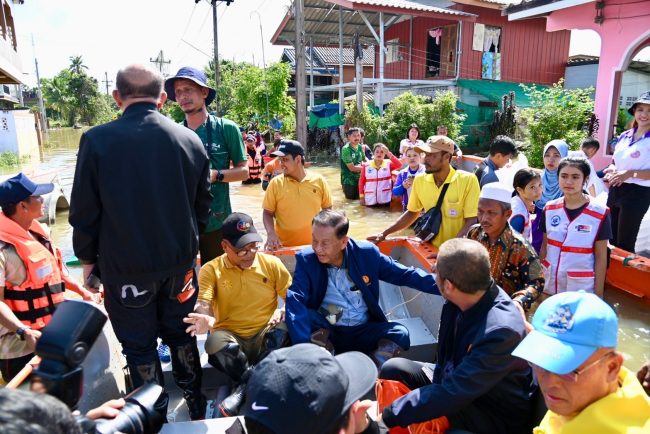 นายวันมูหะมัดนอร์ มะทา ประธานสภาผู้แทนราษฎร และคณะฯ ได้เดินทางไปยังศูนย์ประสานงาน หมู่ที่ 7 ตำบลตะลุโบะ อำเภอเมือง จังหวัดปัตตานี โดยมีผู้ช่วยศาสตราจารย์ ดร.วรวิทย์ บารู สส.จังหวัดปัตตานี นายสุไลมาน บือแนปีแน สส.จังหวัดยะลา พรรคประชาชาติ เดินทางมาสมทบ และร่วมมอบถุงยังชีพให้กับประชาชนในเขตพื้นที่ และนางพาตีเมาะ สะดียามู ผู้ว่าราชการจังหวัดปัตตานี รวมถึงผู้บริหารท้องถิ่น ได้ร่วมกันให้การต้อนรับ