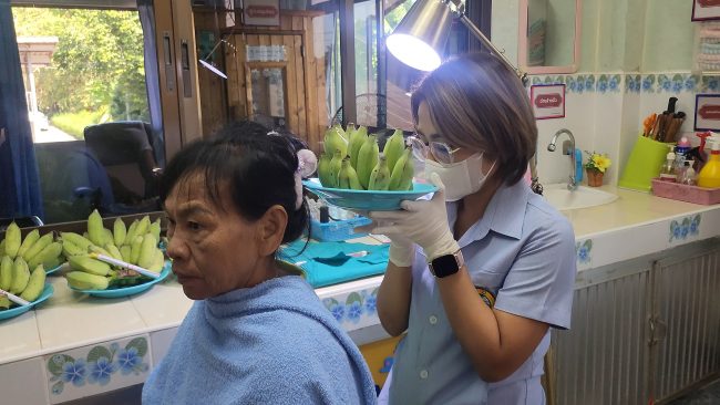นอกจากนี้ที่ รพ.สต.ท่าบัว ก็ยังมีบริการ “นวัตกรรมยาพอกตา สูตรยารสเย็น” ที่ใช้ผงฟ้าทะลายโจรและผงบอระเพ็ด รวมถึงสมุนไพรไทยที่เป็นสูตรลับเฉพาะเพื่อช่วยดูแลสุขภาพของดวงตาได้อีกด้วย