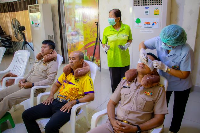 นอกจากนี้ที่ รพ.สต.ท่าบัว ก็ยังมีบริการ “นวัตกรรมยาพอกตา สูตรยารสเย็น” ที่ใช้ผงฟ้าทะลายโจรและผงบอระเพ็ด รวมถึงสมุนไพรไทยที่เป็นสูตรลับเฉพาะเพื่อช่วยดูแลสุขภาพของดวงตาได้อีกด้วย