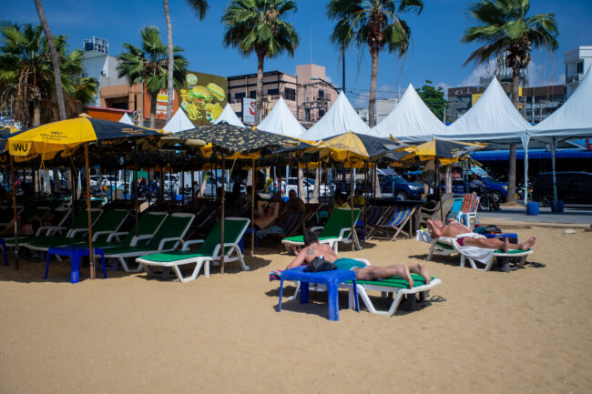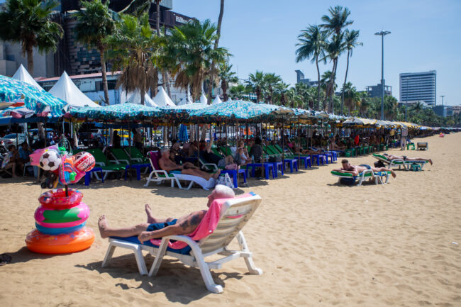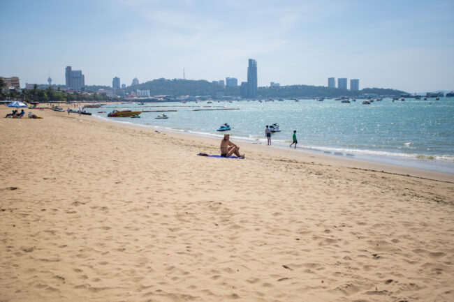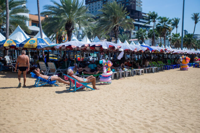 วันที่ 6 มีนาคม 2567 ผู้สื่อข่าว ลงพื้นที่เก็บภาพบรรยากาศบริเวณชายหาดพัทยากลาง อ.บางละมุง จ.ชลบุรี พบ ว่ามีกลุ่มนักท่องเที่ยวต่างประเทศ พากันมาปูผ้านอนอาบแดดพักผ่อน และเล่นน้ำเป็นจำนวนมาก นักท่องเที่ยวบางรายใช้บริการร่มเตียงชายหาดนอนอาบแดดและพักผ่อน โดยพื้นที่ชายหาดพัทยา เป็นชายหาดที่โล่งและมีวิวทิวทัศน์ที่สวยงาม ตลอดแนวชายหาด กว่า 3 กิโลเมตร เนื่องจากสภาพอากาศพื้นที่เมืองพัทยา วันนี้มีดัชนีความร้อนกว่า 51.4 องศา ทำให้นักท่องเที่ยวชาวต่างชาติชื่นชอบและเดินทางมาอาบแดดริมทะเลและใช้เวลาพักผ่อนริมชายหาดพัทยา กันอย่างต่อเนื่อง