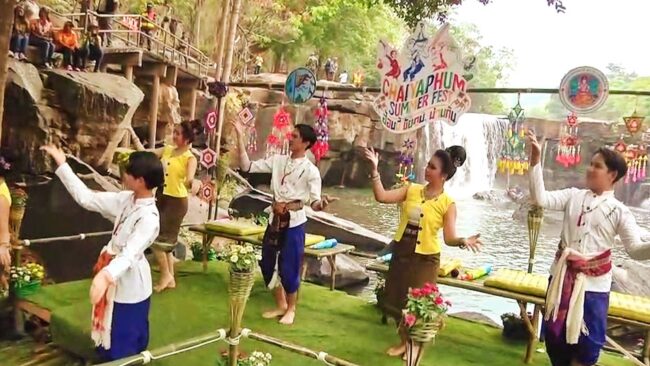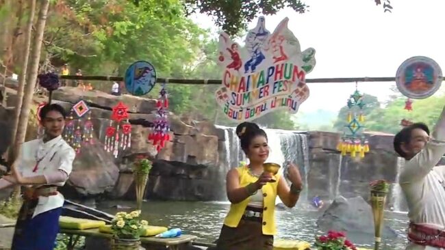 ไฮไลน์ของงานเปิดตัวท่องเที่ยวฤดูร้อนและสงกรานต์ชัยภูมิ kick off : CHAIYAPHUM SUMMER FEST. “ฮ้อนนี้ ชัยภูมิ ม่วนกุ๊บ” ก่อนจะเริ่มเปิดงานได้มีการแสดงในชุดฮ้อนนี้ ชัยภูมิ ม่วนกุ๊บ ของนักเรียนชมรมนาฎศิลปโรงเรียนเมืองพญาแลวิทยา แต่ดูเหมือนเสียงน้ำตกตาดโตน จะดังแรงกว่าเสียงดนตรี แต่ก็ไม่เป็นปัญหา ได้มีการร่ายรำอย่างสวยงามตามจังหวะดนตรีที่ไม่ค่อยได้ยิน จนจบเพลงอย่างสวยงาม