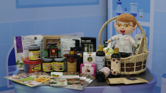 การส่งเสริมการพัฒนาคุณภาพผลิตภัณฑ์สุขภาพ เช่น อาหาร เครื่องสำอางผสมสมุนไพร โดยอาศัยองค์ความรู้ทางห้องปฏิบัติการ การตรวจวิเคราะห์คุณภาพมาตรฐานความปลอดภัยเพื่อยกระดับคุณภาพความปลอดภัยของผลิตภัณฑ์สุขภาพ OTOP/SME