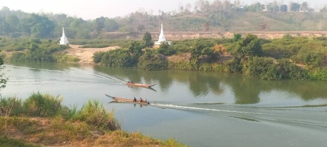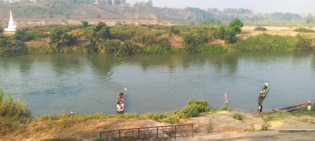 ที่บริเวณ ท่าเรือ-ท่าข้าม ริมแม่น้ำเมย บริเวณชุมชนบ้านแม่ต้านใต้ (จุดตรวจตำรวจ สภ.ท่าสองยาง บ้านใต้) เขตเทศบาลตำบลแม่ต้าน อ.ท่าสองยาง จังหวัดตาก ได้มีประชาชนทั้ง 2 ฝั่ง เดินทางข้ามเรือหางยาวข้ามแม่น้ำเมย ไป-มา หาสู่กัน แบบวิถีชีวิตชาวบ้าน วิถีชีวิต คนชุมชนท้องถิ่น หมู่บ้านคู่ขนาดหมู่บ้านเพื่อการค้า การท่องเที่ยว