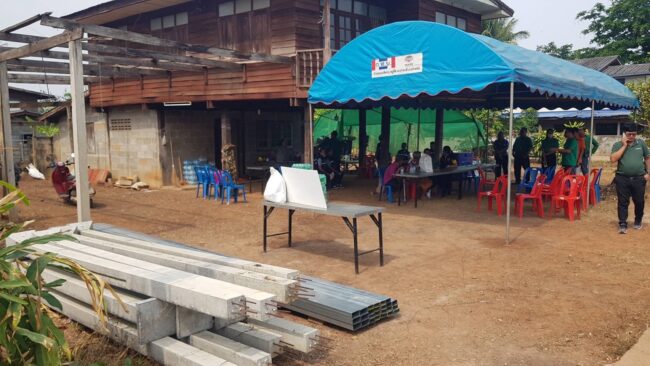 เมื่อวัน 28 มีนาคม 2567 นายจักภพ ศรีสุวรนันท์ ผู้อำนวยการ สนง.ธกส.จังหวัดชัยภูมิ ได้มอบหมายให้ นางประภาศรี พิมพ์สุวรรณ ผช.ผู้อำนวยการ ธกส.จังหวัดชัยภูมิ และนายสิริ จันทร์เอียด ผู้จัดการ ธกส.สาขาแก้งคร้อ นำถุงยังชีพ นำดื่ม และวัสดุอุปกรณ์ก่อสร้างบ้าน ลงพื้นที่บ้านหนองพีพ้วน หมู่ที่ 6 ตำบลเก่าย่าดี อำเภอแก้งคร้อ จังหวัดชัยภูมิ ซึ่งเป็นบ้านของนางพรม ศรีสุชาติ อายุ 70 ปี และสามี โดยมีน.ส.นฤมล โชคเจริญ ปลัดอำเภอแก้งคร้อ พร้อมด้วยผู้ใหญ่บ้าน ผู้นำชุมชน ให้การต้อนรับ