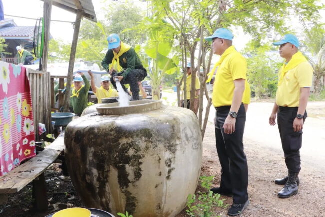 อีกทั้งในช่วงเดือนเมษายน ซึ่งเป็นห้วงของเทศกาลสงกรานต์ซึ่งประชาชนอาจใช้น้ำมากจึงเกรงว่าอาจเกิดการขาดแคลนน้ำเพื่อการอุปโภค-บริโภคได้ โดยจิตอาสา ชค.ทพ.12 ได้นำน้ำสะอาดไปใส่ตามภาชนะต่างๆ เช่น ตุ่มน้ำ หรือโอ่งน้ำขนาดใหญ่ ตามบ้านเรือนประชาชนซึ่งจะสามารถเก็บกักน้ำไว้ใช้ได้ ในห้วงฤดูแล้งนี้ สร้างความยินดีและดีใจให้กับชาวบ้านตามหมู่บ้านชายแดนเป็นอย่างยิ่ง