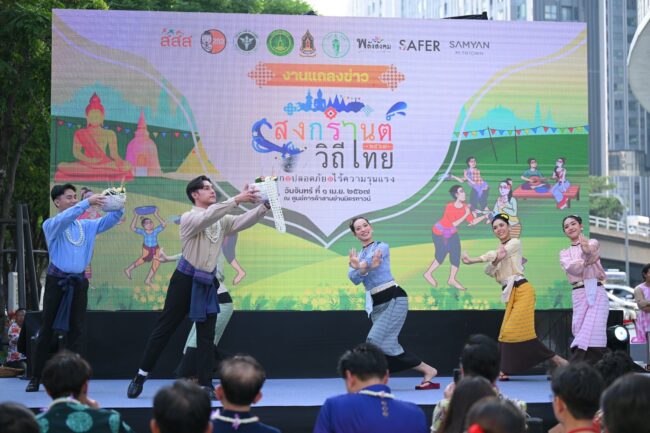 เมื่อวันที่ 1 เม.ย.2567 ที่ศูนย์การค้าสามย่านมิตรทาวน์ สำนักงานกองทุนสนับสนุนการสร้างเสริมสุขภาพ (สสส.) ร่วมกับสำนักงานเครือข่ายองค์กรงดเหล้า (สคล.) และมูลนิธิเครือข่ายพลังสังคม จัดแถลงข่าว “สงกรานต์วิถีไทย สนุก ปลอดภัย ไร้ความรุนแรง” โดย ดร.นพ.ไพโรจน์ เสาน่วม รองผู้จัดการกองทุนสนับสนุนการสร้างเสริมสุขภาพ (สสส.) กล่าวว่า สสส. สนับสนุนให้เจ้าภาพจัดงาน และเจ้าของสถานที่ในพื้นที่ต่างๆ จัดงานสงกรานต์และส่งเสริมให้มีพื้นที่เล่นน้ำปลอดเหล้า จากผลการสำรวจความคิดเห็นคนไทย 939 คน และต่างชาติ 400 คน ใน 18 จังหวัดทั่วประเทศ ในช่วงสงกรานต์ปี 2566 พบว่า นักท่องเที่ยวต่างชาติพอใจการจัดงานสงกรานต์ปลอดเหล้ามากถึง 88.90% ขณะที่คนส่วนใหญ่เห็นด้วยกับการจัดสงกรานต์แบบปลอดเหล้า 75.83% เห็นด้วยจัดโซนนิ่งเล่นน้ำ 79.23% เห็นด้วยกับมาตรการควบคุมไม่ให้นำเครื่องดื่มแอลกอฮอล์เข้ามาดื่มในพื้นที่จัดงาน 77.74% เห็นด้วยที่เจ้าภาพจัดงานไม่รับสปอนเซอร์จากธุรกิจเหล้า-เบียร์ 73.16% เมื่อถามถึงประโยชน์ของการจัดงานแบบปลอดเหล้า พบว่า ช่วยเพิ่มความปลอดภัยให้เพิ่มมากขึ้น 90.42% สามารถลดอุบัติเหตุ 89.99% ลดการทะเลาะวิวาท 89.67% ลดการลวนลามล่วงละเมิดทางเพศ 85.20% และเห็นว่าการจัดงานแบบปลอดเหล้าไม่ทำให้นักท่องเที่ยวลดลง 80.30%