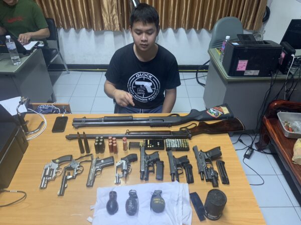 ต่อมาเจ้าหน้าที่ตำรวจ กก.4 บก.สอท.5 ได้ทำการตรวจค้นบ้านหลังดังกล่าว ผลการตรวจค้นพบอาวุธปืนทั้งที่มีทะเบียน และไม่มีทะเบียน รวม 9 กระบอก กระสุนปืนขนาดต่างๆรวมทั้งกระสุนปืนที่ใช้ในการสงคราม รวม 92 นัด ลูกระเบิดมือขว้าง แบบต่างๆ รวม 3 ลูก จากการสอบถามให้การรับว่าของกลางทั้งหมดเป็นของบิดาตน ซึ่งเสียชีวิตไปแล้ว และตนเองได้เก็บรักษาเอาไว้