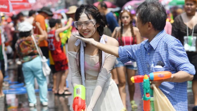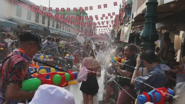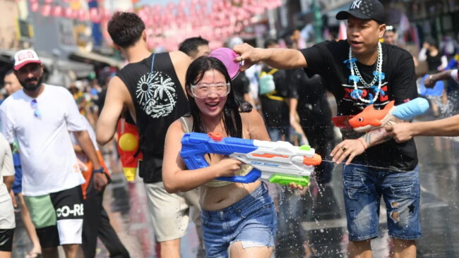 เมื่อวันที่ 12 เม.ย. 67 ผู้สื่อข่าวรายงานบรรยากาศ การเล่นน้ำสงกรานต์ ที่ถนนข้าวสาร ตั้งแต่เวลาช่วงบ่ายที่ผ่านมา มีชาวไทยและชาวต่างชาติจำนวนมาก เริ่มทยอยเดินทางเข้ามาเล่นน้ำสงกรานต์เป็นวันแรก ท่ามกลางอากาศร้อนอบอ้าว ตลอดเส้นทางตั้งแต่แยกบางลำพู ถนนจักรพงษ์ ซอยรามบุตรี มุ่งหน้าถนนข้าวสาร มีการตั้งแผงจำหน่ายปืนฉีดน้ำในราคาตั้งแต่ 250-400 บาท ทั้งมีการตั้งถังจำหน่ายน้ำให้นักท่องเที่ยว เติมใส่ปืนฉีดน้ำในราคาตั้งแต่ 10-20 บาท