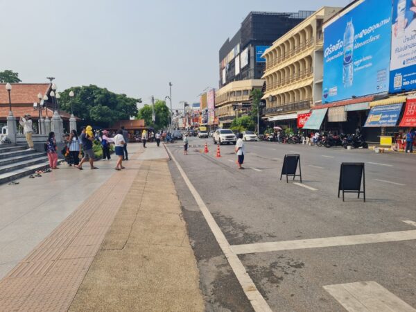 เจ้าหน้าที่เทศบาลนครนครราชสีมา ได้มีการนำโครงเหล็กติดตั้งสปริงเกอร์ฉีดน้ำ และไฟแสงสีเสียง มาติดตั้งไว้เป็นระยะทางยาวกว่า 500 เมตร ที่บริเวณถนนราชดำเนิน หน้าลานอนุสาวรีย์ท้าวสุรนารี อ.เมือง จ.นครราชสีมา พร้อมกับมีการตั้งเวทีกลางบริเวณลานคนมุง ข้างลานอนุสาวรีย์ท้าวสุรนารี เพื่อเตรียมความพร้อมในการจัดประเพณีสงกรานต์ ประจำปี 2567 ซึ่งปีนี้ทางเทศบาลนครนครราชสีมา ร่วมกับจังหวัดนครราชสีมา และการท่องเที่ยวแห่งประเทศไทย จัดงานมหาสงกรานต์โคราช ขึ้นอย่างยิ่งใหญ่ ระหว่างวันที่ 13-15 เม.ย. 67 โดยจะปิดถนนบริเวณรอบลานอนุสาวรีย์ท้าวสุรนารี ภายในเขตเทศบาลนครนครราชสีมา ในช่วงวันที่ 13-15 เม.ย. ตั้งแต่เวลา 18.00 น. ถึง 21.00 น. เปิดเป็นถนนขั่วหมี่ เพื่อให้ประชาชนเดินเล่นน้ำสงกรานต์ โดยจะมีอุโมงค์น้ำประกอบแสงสีเสียง ติดตั้งไว้ 2 จุด ความยาวรวมกว่า 500 เมตร บริเวณถนนราชดำเนิน หน้าลานอนุสาวรีย์ท้าวสุรนารี