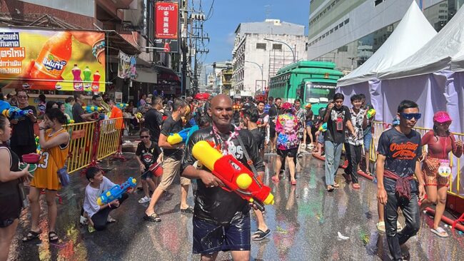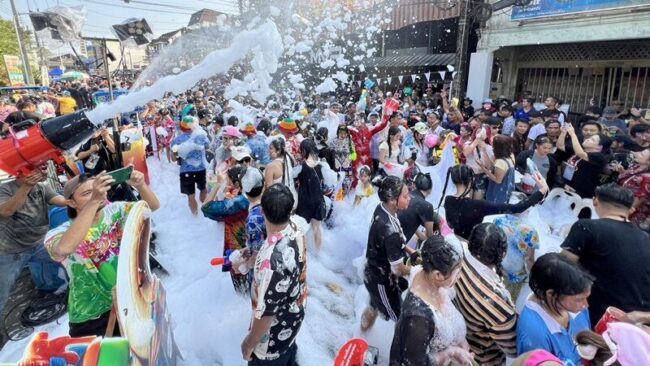 ที่ จ.ชลบุรี หนึ่งในจังหวัดที่มีแหล่งท่องเที่ยวชายทะเลดัง ผู้สื่อข่าวรายงานว่าตลอดช่วงบ่าย ถนนสุขุมวิทลงหาดบางแสนและตามถนนเลียบหาดบางแสน มีผู้คนเล่นสาดน้ำกันจำนวนมาก โดยมีการสาดน้ำใส่กันและประแป้งมีทั้งชาวไทยและชาวต่างชาติ ซึ่งการเล่นสาดน้ำของบางแสน จะมียาวถึงวันไหลบางแสนคือวันที่ 16-17 เม.ย.นี้ ท่ามกลางการดูแลความปลอดภัยของเจ้าหน้าที่ตำรวจ และเจ้าหน้าที่เทศกิจของเทศบาลเมืองแสนสุข เพื่อป้องกันเหตุ แต่เนื่องด้วยมีประชาชนมาเล่นน้ำสงกรานต์จำนวนมาก ทำให้การจราจรบนถนนสุขุมวิท จากชลบุรีไปบางแสน ทั้งขาเข้าขาออก รวมทั้งถนนข้าวหลามที่จะมุ่งหน้าสู่หาดบางแสน ติดขัดอย่างหนักเป็นบางช่วง