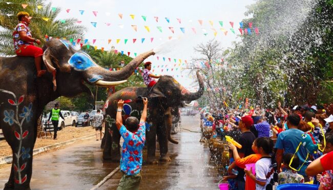ที่สุโขทัย ประชาชนนักท่องเที่ยวจำนวนมากแห่ไปสาดน้ำเล่นสงกรานต์ที่ถนนข้าวตอก อ.เมืองสุโขทัย ถนนข้าวสุก หรือถนนสายเสนา-ชันสูตร อ.วิเศษชัยชาญ จ.อ่างทอง ถนนศรีจันทร์หรือถนนข้าวเหนียว อ.เมืองขอนแก่น ถนนข้าวหอมมะลิ หน้าบึงพลาญชัยร้อยเอ็ด อำเภอเมืองร้อยเอ็ด ถนนข้าวปุ้น อ.เมืองนครพนม ถนนขั่วหมี่ บริเวณอนุสาวรีย์ท้าวสุรนารี อ.เมืองนครราชสีมา ฯลฯ แล้ว อีกหนึ่งประเพณีเนื่องในวันสงกรานต์คือสรงน้ำพระพุทธรูปที่มีผู้เลื่อมใสศรัทธา โดยที่บริเวณหน้าพระอุโบสถ วัดโพธิ์ชัย พระอารามหลวง อ.เมืองหนองคาย มีพิธีบวงสรวงพระธาตุอรหันต์ ก่อนจะทำพิธีขอขมาหลวงพ่อพระใส พระคู่บ้านคู่เมืองหนองคาย โดยชาวหนองคายกว่า 1,000 คน ร่วมกันฟ้อนถวายบูชาหลวงพ่อพระใส ซึ่งปีนี้เป็นปีแรกที่อัญเชิญองค์หลวงพ่อพระใสองค์จำลอง โดยขบวนแห่รอบพระอุโบสถ 3 รอบ ให้ชาวหนองคายได้สรงน้ำอย่างใกล้ชิด จากนั้นอัญเชิญขึ้นราชรถแห่รอบเมืองหนองคาย ส่วนที่วัดศรีชมภูองค์ตื้อ บ้านน้ำโมง ต.น้ำโมง อ.ท่าบ่อ จ.หนองคาย มีนักท่องเที่ยวชาวไทย ชาวลาว และชาวต่างประเทศพากันเข้าวัดทำบุญอย่างคึกคัก รวมถึงสรงน้ำองค์หลวงพ่อพระเจ้าองค์ตื้อ พร้อมทั้งทำบุญถวายสังฆทาน เพื่อความเป็นสิริมงคลให้แก่ตัวเองและครอบครัว