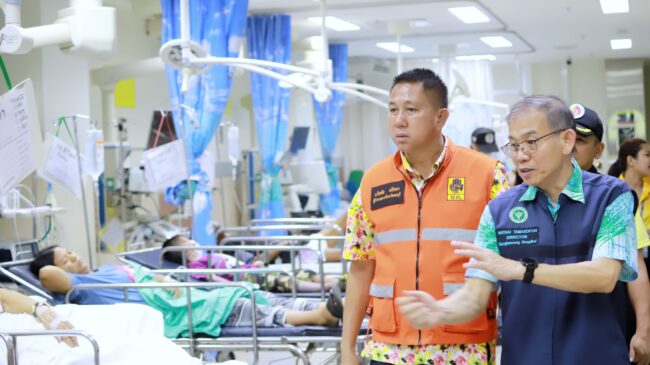 โดยหน่วยกู้ภัยได้นำส่งผู้บาดเจ็บที่โรงพยาบาลบางละมุงจำนวน 82 ราย Admit 25 ราย เป็นผู้ป่วยสีแดง 2 ราย สีเหลือง 23 รายจำหน่ายกลับบ้าน 57 ราย เป็นผู้ป่วยสีเหลือง 12 ราย สีเขียว 45 ราย เบื้องต้นมียอดผู้ป่วยปัจจุบันทั้งหมดจากหลายโรงพยาบาลในพื้นที่ จำนวน 155 ราย สีแดง 10 ราย สีเหลือง 36 ราย กลับบ้าน 109 ราย ผู้ป่วยที่ใส่ท่อช่วยหายใจ และผู้ป่วยหนักสีแดงให้ จนท.ดูแลอย่างใกล้ชิด การดูแลผู้ป่วยสีเหลืองที่รับไว้รักษาในโรงพยาบาลให้ดีขึ้นโดยเร็วที่สุด ส่วนผู้ป่วยสีเขียวให้คำแนะนำก่อนส่งตัวกลับบ้าน