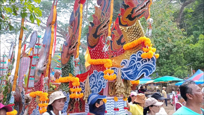 ขณะที่บรรยากาศเป็นไปอย่างคึกคัก ได้มีการนำช้างมาร่วมขบวนชักพระหรือลากพระบกไปตามถนน โดยมีวัดวาอารามต่างๆ ในพื้นที่ อ.พิปูน นำเรือพระมาร่วมเป็นจำนวนมาก และยังมีการร้องรำทำเพลงเพื่อให้ผู้มาร่วมงานสนุกสนานกันอย่างทั่วหน้า ถือเป็น 1 เดือวที่จัดขึ้นที่อำเภอพิปูน