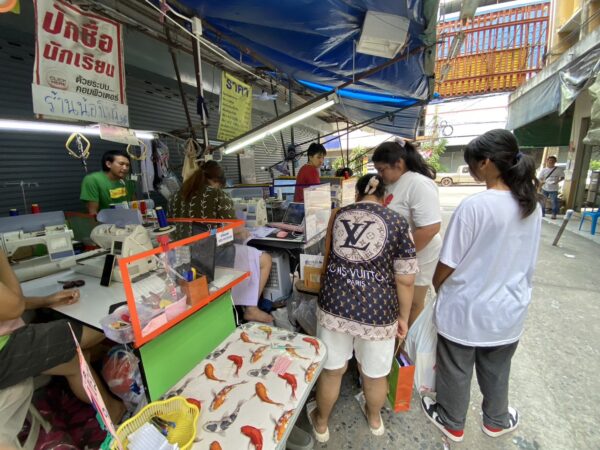 จากการสอบถามกับทางเจ้าของร้านทราบว่าช่วงก่อนเปิดภาคเรียนปีนี้นั้นลูกค้ามีจำนวนลดลงอย่างมากเมื่อเปรียบเทียบกับปีที่แล้ว ซึ่งคาดว่าน่าจะเกิดจากปัญหาทางด้านเศรษฐกิจที่สังเกตุจากการที่ผู้ปกครองส่วนใหญ่เน้นการนำเสื้อเก่ามาเลาะชื่อออกเพื่อปักชื่อใหม่แทนการซื้อเสื้อตัวใหม่ ซึ่งถ้าเปรียบเทียบกับเมื่อปีที่แล้วนั้นจะเห็นว่ามีจำนวนกว่า 70-80 เปอร์เซ็นต์ ที่นำเสื้อเก่ามาเลาะชื่อ ส่วนลูกค้าที่นำเสื้อใหม่มาปักชื่อนั้นมีน้อยมากในปีนี้