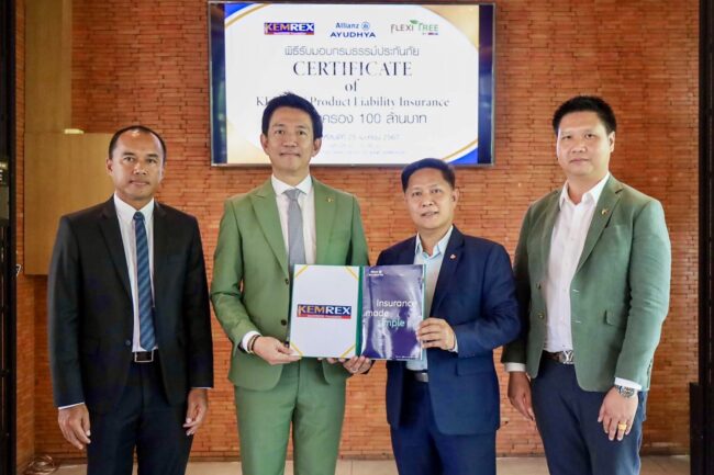 บริษัท เข็มเหล็ก จำกัด ร่วมกับ Allianz Ayudhya จัดพิธีรับมอบกรมธรรม์ประกันภัย “KEMREX Product Liability Insurance” ความคุ้มครอง 100 ล้านบาท เพื่อให้ความคุ้มครองการบาดเจ็บต่อร่างกาย หรือความเสียหายต่อทรัพย์สินอันเป็นผลมาจากความบกพร่องของผลิตภัณฑ์ นับเป็นบริษัทเดียวในตลาดผลิตภัณฑ์ฐานราก