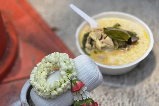 จากนั้นรถตู้ได้นำศพนายกำธรมาถึงบริเวณจุดเกิดเหตุ พระภิกษุสงฆ์และกลุ่มญาติ ได้ทำพิธีเชิญดวงวิญญาณนายกำธรจากท่อร้อยสายไฟฟ้าจุดเกิดเหตุ โดยมีเจ้าหน้าที่เทศกิจสำนักงานเขตวังทองหลาง นำกล่าวเชิญดวงวิญญาณ โดยทางญาติได้นำอาหารเป็นแกงไก่มาวางและจุดธูปปักไว้บริเวณหน้าหลุมหน้าท่อ วางดอกไม้สดพวงมาลัยดอกไม้สดไว้ที่ฝาท่อจุดเกิดเหตุ พระภิกษุได้สวดมนต์และกรวดน้ำ ก่อนรถตู้นำศพไปบำเพ็ญกุศลที่วัดธาตุทองตามกำหนดการ