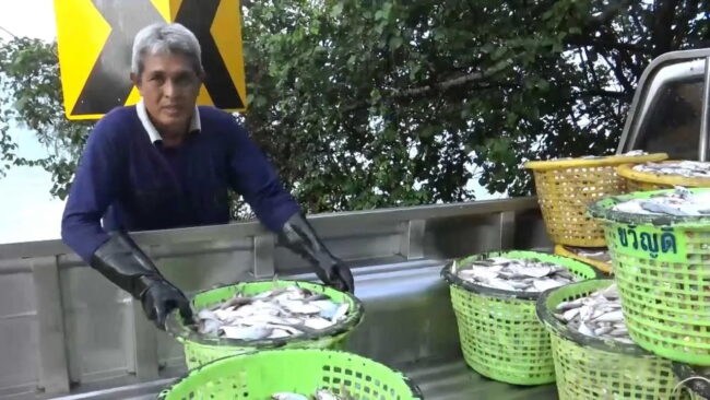 เกษตรกรผู้เลี้ยงปลากะพงขาว ต.เกาะยอ กล่าวต่อว่า ปลากะพงขาวที่เลี้ยงทั้งหมด 10 กระชัง มีปลาขนาดใหญ่ประมาณ 3 กก. จำนวน 6 กระชัง ปลาเล็กขนาด 3 ขีดอยู่ 4 กระชัง อาหารสดเนื้อปลาให้ปลากินวันละ 125 กก. ถ้าให้อาหารเม็ดวันละ 2 กระสอบ 40 กก. เฉพาะปลาขนาดใหญ่ ปลาเล็กให้วันละ 5 กก. โดยจะให้แค่ปลากินหมดเท่านั้น นี่คือวิธีการเลี้ยงปลากะพงขาวในกระชังของเกษตรกรใน ต.เกาะยอ ช่วงหน้าร้อนปีนี้เพื่อให้ผ่านพ้นช่วงวิกฤติอากาศร้อนไปได้