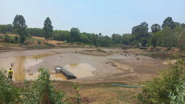 เกษตรกรบ้านสวนป่า หมู่ 17 ต.บักดอง อ.ขุนหาญ จ.ศรีสะเกษ กำลังเผชิญกับอากาศร้อนแล้งส่งผลกระทบกับสวนทุเรียนในพื้นที่เป็นอย่างมาก น้ำจากแหล่งเก็บกักน้ำธรรมชาติแห้งขอด จากที่เคยโยงท่อประปา ต่อแผงโซลาร์เซลล์ เพื่อแบ่งปันนำน้ำไปใช้รดในสวนทุเรียนได้ แต่ตอนนี้ไม่มีแล้ว สวนไหนพอมีแหล่งน้ำก็จะแบ่งปัน แม้จะต้องสลับกันรอเป็นชั่วโมง กว่าที่น้ำใต้ดินจะซึมให้พอสูบมาใช้ได้