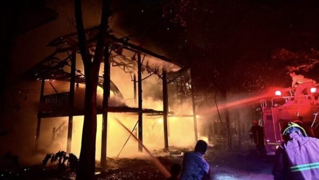 ที่เกิดเหตุพบเพลิงลุกไหม้กุฏิไม้อย่างรุนแรง เจ้าหน้าที่ระดมรถน้ำกว่า 6 คัน ช่วยกันฉีดสกัดเพลิงแต่เป็นไปด้วยความยากลำบาก เนื่องจากมีลมกระโชกทำให้เปลวไฟลุกลามไปยังกุฏิปลูกอยู่ติดกัน เจ้าหน้าที่ใช้เวลานานกว่า 1 ชม.จึงควบคุมเพลิงไว้ได้ แต่ไฟเผากุฏิวอดไป 4 หลัง