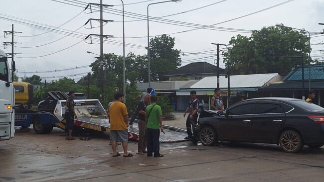 ระทึก!ฝนตกถนนลืน หนุ่มซิ่งเก๋งฝ่าไฟแดงชนสนั่นกลางสี่แยกกบินทร์บุรีเจ็บ 2