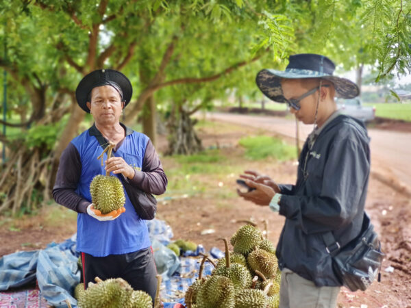 จากการสอบถาม นายสมร จันทรา อายุ 56 ปี พ่อค้าทุเรียนตลาดเทิดไท ในเขตชานเมือง จ.นครราชสีมา บอกว่า ปกติตนเป็นพ่อค้าคอยตระเวนหารับซื้อทุเรียนเพื่อส่งขายให้กับล้งทั่วไป และตอนนี้ได้ข่าวว่า เกษตรกรผู้ปลูกทุเรียนที่บ้านป้ายอุบลแห่งนี้ ได้รับความเดือดร้อนจากพายุ พัดทุเรียนที่กำลังจะได้เก็บเกี่ยวร่วงหล่นจำนวนมาก จึงมาเสนอทางเลือกให้กับเจ้าของสวน ขอรับซื้อในราคากิโลกรัมละ 10 บาท เพื่อนำไปขายต่อให้กับโรงงานผลิตส่วนผสมขนมต่างๆ อาทิ นำไปบดเป็นแป้ง ขึ้นแม่พิมพ์เป็นขนม หรือส่วนประกอบในลูกอมที่มีรสชาติและกลิ่นของทุเรียน รวมทั้ง ไอติม เป็นต้น
