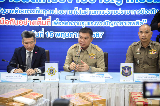 พล.ต.ท. ภาณุรัตน์ หลักบุญ เลขาธิการ ป.ป.ส. เปิดเผยว่า ปัจจุบันการค้ายาเสพติดในลักษณะเครือข่ายอาชญากรรมข้ามชาติ ถูกลักลอบลำเลียงยาเสพติด โดยใช้ประเทศไทยเป็นทางผ่านไปยังประเทศที่ 3 ยังพบอยู่อย่างต่อเนื่อง ทั้งผ่านการขนส่งพัสดุระหว่างประเทศ ขนส่งทางอากาศและซุกซ่อนในสินค้าต่างๆ ผ่านการขนส่งทางเรือ