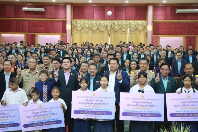 เมื่อเร็วๆนี้ นายสุรศักดิ์ พันธ์เจริญวรกุล รัฐมนตรีช่วยว่าการกระทรวงศึกษาธิการ มอบนโยบายแนวทางการยกระดับคุณภาพการศึกษา ปีการศึกษา 2567 พร้อมทั้ง มอบทุนการศึกษากองทุนเพื่อพัฒนาการศึกษา สพป.ชัยภูมิ เขต 2 จำนวน 307,000 บาท และมอบบ้านน้ำใจ คืนความสุขสู่ลูก สพฐ. ของ สพป.ชัยภูมิ เขต 2 ปีที่ 10 หลังที่ 100 ณ สพป.ชัยภูมิ เขต 2