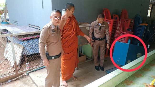 นอกจากนั้นพบว่ามีโจรใจบาปนำตู้บริจาคอลูมิเนียมขนาด 50 ซม.ยาว 2 เมตร มาวางไว้ด้านนอกการจัดจุดเกิดเหตุประมาณ 20 เมตร ภายในวัดยังไม่มีกล้องวงจรปิด ซึ่งทางคณะกรรมการวัดจะดำเนินการติดกล้องวงจรปิดภายในวัดเร็วๆนี้ คาดว่าโจรใจบาปน่าจะเป็นคนใน ซึ่งอาจจะเป็นลูกศิษย์ลูกหาของพระลูกวัดที่อาศัยอยู่ในวัด เพราะว่า เครื่องมือก่อสร้างถูกนำออกมาก่อเหตุ โดยทางเจ้าหน้าที่ตำรวจได้เก็บไว้เป็นหลักฐานแล้ว เงินบริจาคที่อยู่ในตู้น่าจะมีประมาณ 10,000 บาท ผู้ก่อเหตุน่าจะมือไม่ต่ำกว่า 2 คน
