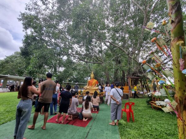 ขณะเดียวกันมีกิจกรรมทางพุทธศาสนาตลอดตั้งแต่เช้า อาทิ ทำบุญให้ทาน การถวายสังฆทาน การให้พุทธสารสนิกชน – นักท่องเที่ยวนมัสการต้นพระศรีมหาโพธิ์ ที่ใหญ่และเก่าแก่ที่สุดในประเทศอายุมากกว่า2,500 ปี ได้รับการขึ้นทะเบียนเป็นโบราณสถานจากกรมศิลปากร นำหน่อมาจากเมืองพุทธคยาประเทศอินเดีย ต้นเดียวกับพระพุทธเจ้าทรงตรัสรู้