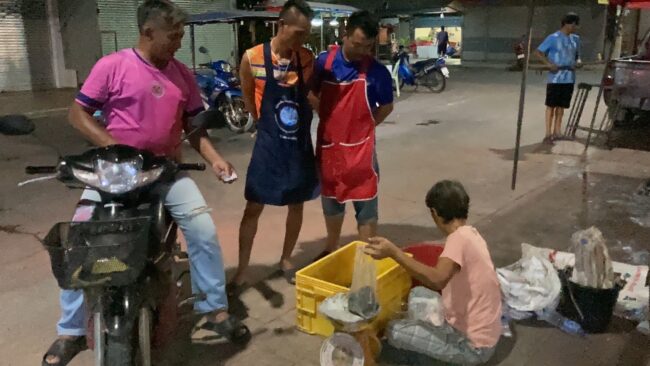 นาง สังเวียน ค้ากลาง อายุ 63 ปี หนึ่งในชาวบ้านที่ออกไปจับอึ่งอ่าง บอกว่า ตนเองและเพื่อนบ้าน เลือกที่จะออกมาจับอึ่งอ่างตามริมถนน เพราะอึ่งอ่างจะออกมากินแมลงเม่าที่บินมาตอมไฟริมทางจึงง่ายต่อการมองเห็น สำหรับช่วงนี้ได้มีฝนตกติดต่อกัน ทำให้อึ่งอ่างออกจากโพรง ทำให้มีปริมาณมากพอสมควร จึงทำให้จับได้กว่า 3-4 กิโลกรัม