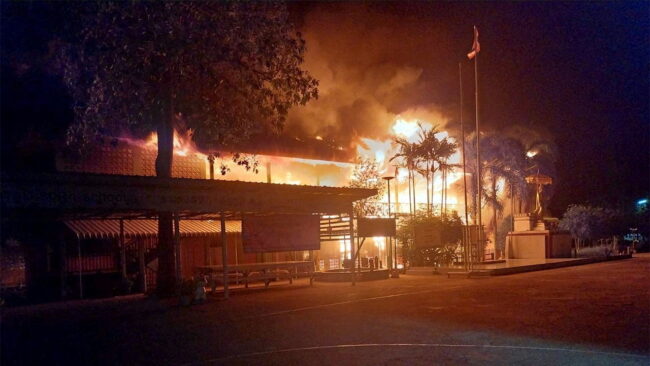 ปทุมธานี-เพลิงเผาอาคารเรียนไม้เก่าแก่อายุร่วม 100 ปีเสียหายหมดทั้งหลัง ทำนักเรียนเศร้าไม่มีที่เรียน ผู้บริหารโรงเรียนต้องประกาศปิดเรียนฉุกเฉินยาวเป็นอาทิตย์ ก่อนปรับศาลาวัดกั้นเป็นห้องเรียนชั่วคราว เผยต้นเพลิงเกิดจากห้องเรียนชั้นล่าง ก่อนลุกลามขึ้นไปชั้นบนรวม 8 ห้อง โต๊ะเก้าอี้อุปกรณ์สื่อการเรียนการสอนวอดคากองเถ้าถ่าน คาดสาเหตุเกิดจากไฟฟ้าลัดวงจร