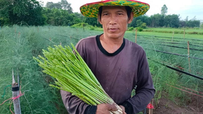 หนุ่มกบินทร์บุรี ปลูกหน่อไม้ฝรั่งเป็นอาชีพเสริม ขายเกรดเอ กก.ละ 150 บาท